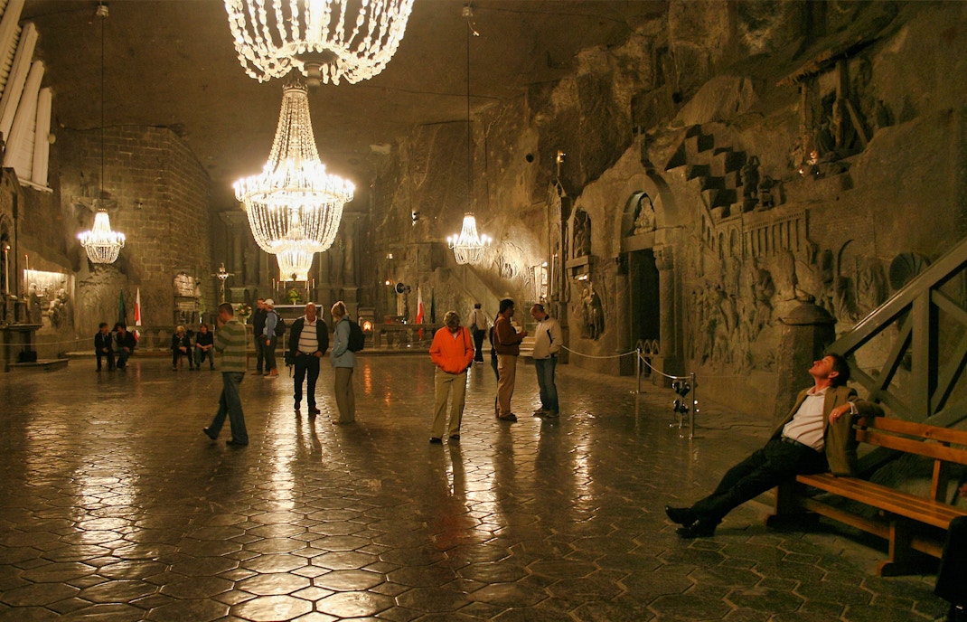 A Mina de Sal de Wieliczka recebe mais de um milhão de visitantes por ano.